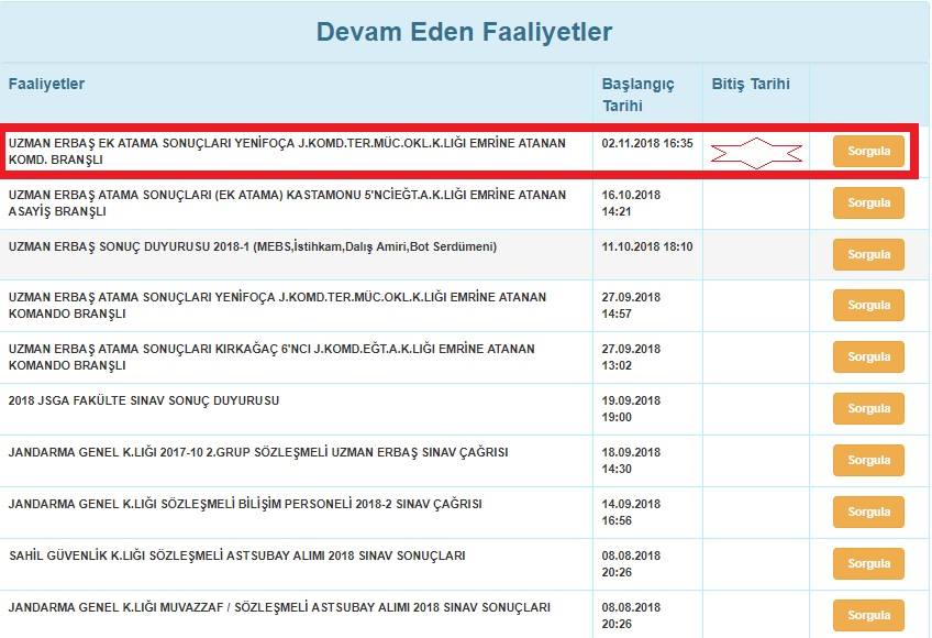 Uzman Erbaş Asayiş, Lojistik ve MEBS Atama Duyuruları Yayınlandı !